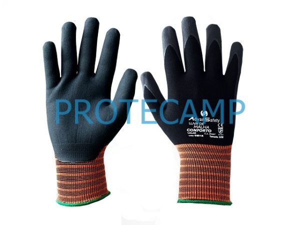 LUVA EM NYLON REFORÇADO COM BANHO NITRILICO FOAM NA PALMA E DEDOS.